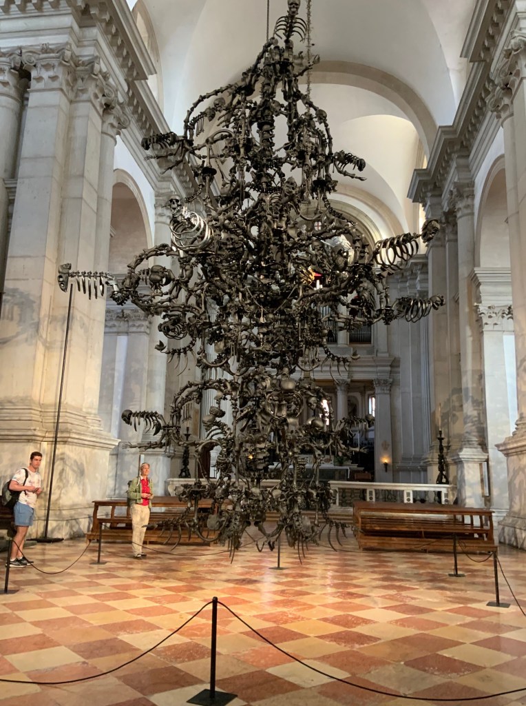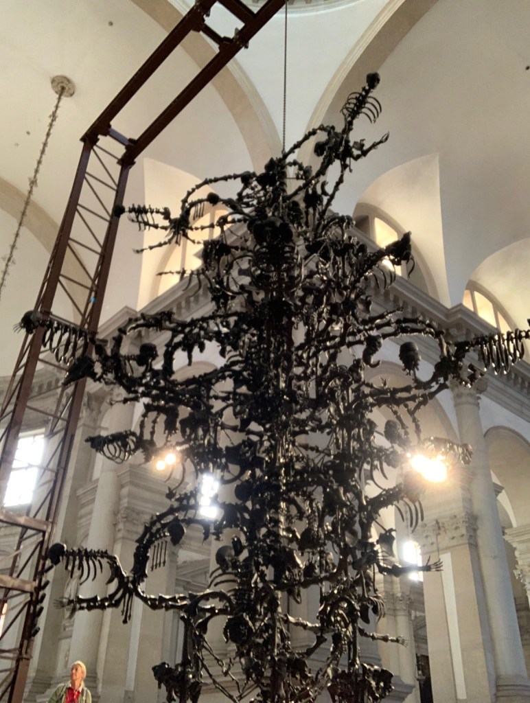 התערוכה של האמן הסיני ai weiwei שכותרתה La commedia umana הקומדיה האנושית התקיימה בבזיליקה באי סן ג׳ורג׳יו, מתקרת הכנסייה נתלה מייצב מרשים במימדיו המדמה שנדלייר ענק הבנוי מאלפיים חלקים ושוקל 2.700 קילו ברוחב שישה מטר ובגובה תשעה מטר עשוי מזכוכית שחורה. פסל הענק הזה שכולו מורכב מחלקים המדמים עצמות וחלקי גוף אורגניים, מרשים בנוכחותו העוצמתית. הפסל נבנה בסטודיו berengo במהלך ארבע שנים בעבודת יד באי מורנו, והוא הפסל הגדול ביותר שנבנה באי אי פעם, אתגר אומנותי ואמנותי מרשים ביותר המאפיין רבות מעבודותיו של האמן לאורך הקרירה האמנותית שלו.