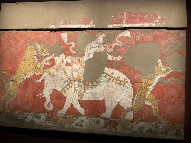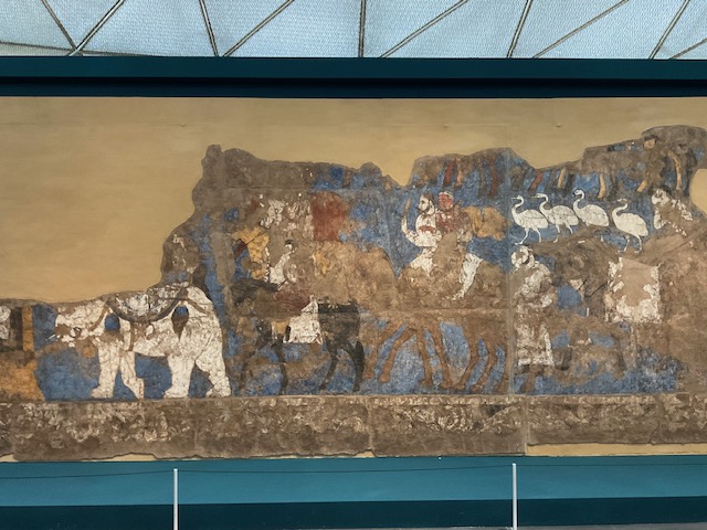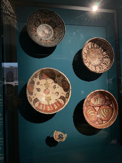 התערוכה מתמקדת באוזבקיסטן, מדינה שהיא למעשה תוצר מודרני של חיבור טריטוריאלי ופוליטי בין מספר אמירויות שהיו בעבר ערי מדינה עם שליטים שונים. כיום אוזבקיסטן חווה פריחה כלכלית ותרבותית (גם בזכות העניין הגובר של סין ורוסיה במדינות מרכז אסיה). כשביקרנו שם, בשנת 2018, שמענו מאנשים מקומיים גאווה בלכידות הלאומית של מדינה שבה יותר מארבעים קבוצות אתניות שונות חיות בכפיפה אחת (עמותות זכויות אדם הראו, יחד עם זאת, שהשלטון נוקט בצעדים אגרסיביים נגד מתנגדים, עיתונאים ופעילים). המגוון האנושי והתרבותי המרתק של מרכז אסיה אינו חדש: בעבר גרו שם שבטי של נוודים, סוחרים נודדים, חקלאים ולוחמים, שמצאו במרחבי המדבר ובנאות הפוריות את ביתם. בעיקר אחרי הכיבוש המוסלמי, מרכז אסיה חווה פריחה תרבותית מרהיבה, שהתבטאה גם בכלי קרמיקה, בדים וציורי קיר שחלקם הוצגו בתערוכה. אחד הציורים שעניין אותנו במיוחד הוא ציור קיר מהמאה ה-7, תקופה בה דת האיסלאם כבר שלטה באיזור. למרות זאת, הציור מראה שגרירים של דת זרתוסטרא מגיעים לחגוג את ראש השנה (נרווז) בעיר סמרקנד, שריד למסורות דתיות קודמות, שנותרו בעיר עד ימינו.