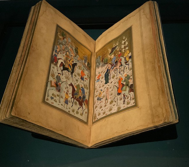 ממצאים טקסטליים לרוב נדירים ולכן יש לנו מעט דוגמאות מוקדמות של תרבות חומרית טקסטילית לעומת חימר, אבן, שיש, ואפילו זכוכית. מעיל מאירן עשויי בד משי שזור חוטי זהב מהמאה ה11 לספירה הוא פריט יחודי המוצג בתערוכה, בהשאלה מאוסף פרטי בלונדון, כמו גם ספרים כתובים ומאויירים ביד השאלת הספריה הלאומית פריז וביניהם ״המיליון״ של מרקו פולו, המספר על מפגשו עם שליט סין, ממוצא מונגולי, קובלאי חאן.
