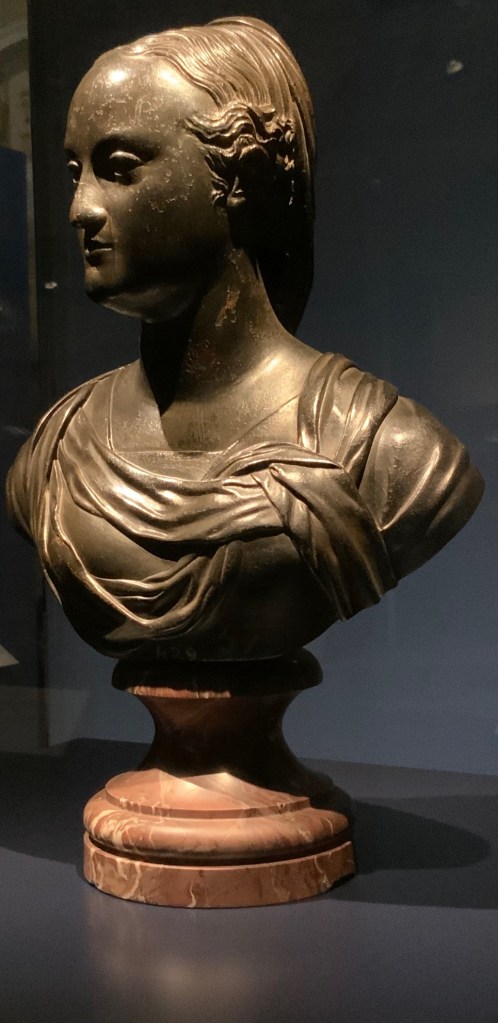 עד מותה ממלריה ושחפת בגיל ארבעים, היא ילדה אחד עשרה ילדים. חלקם מתו בילדותם ואלו שנותרו בחיים הפכו לקרדינלים, דוכסים ודוכסיות. התערוכה מדגישה את תשומת הלב שלה לפרטי המלתחה שלה ושל ילדיה: אריגים, תכשיטים, נעליים, גרביים. בסדרת ציורי הפורטרטים שלה היא מופיעה לבושה בשמלות מרשימות מבד קטיפה ארוג דמשק בדוגמא בעלת אופי ספרדי, שמצוירת בסגנון ריאליסטי מהפנט. לצידה עומדים לרוב ילדיה, גם הם לבושים במיטב המחלצות. בהמשך, בפורטרט האחרון שלה ניכרים אותות הגיל: הממחטה הלבנה בידה היא אולי רמז למחלת השחפת הקטלנית. כל אלו מציירים דמות ייחודית, אשת משפחה, פטרונית אמנות שהמציאה את האסתטיקה של שושלת מדיצ׳י שידעה לתעד את משפחתה כמעט כמו אלבום משפחתי מודרני. גם במרחק חמש מאות שנים ניתן כמעט לשמוע את רישרוש השמלות שלה בחלל הארמון .