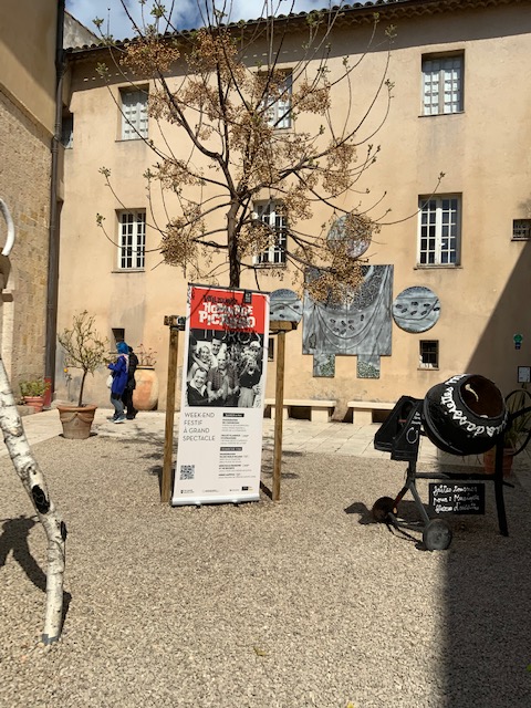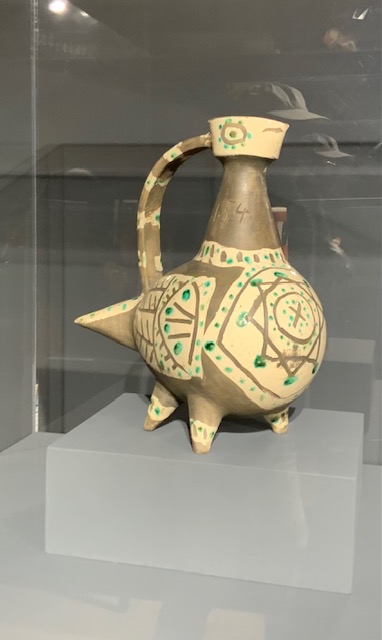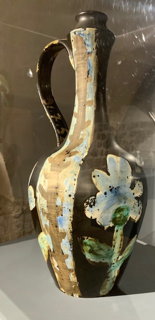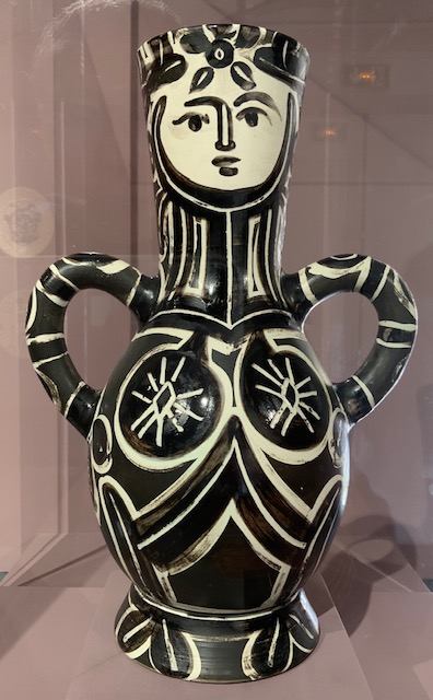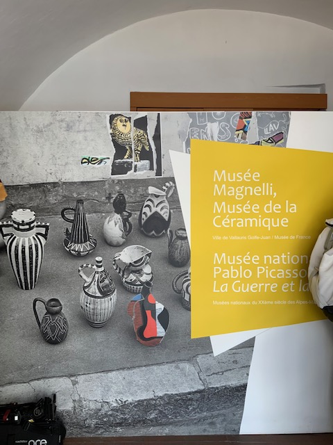 בסיום המלחמה פיקאסו ובת זוגו באותה תקופה האמנית הצעירה פרנסואז ג׳ילו עזבו את פאריז ועברו להתגורר בכפר ההררי הקטן vallauris מעל אנטיב, המשקיף מרחוק על המפרץ והים הכחול. פיקאסו היה בן 62 כשהוא התאהב בפשטות החיים בכפר ובמנטליות הפשוטה של האנשים המנוגדת כל כך לאוווירה הפריזאית. כאן הוא מצא סדנאות קרמיקה וארטיזנים בעלי מסורת עתיקה של עבודה בחומר. לחופי הים התיכון עבדו אומנים עם היסטוריה מאז תקופת הרומאים של יצור כלי אכילה ובישול שעוררו את סקרנותו האמנותית. איתם החל להתנסות ביצירה בחומר, וכך בתקופה הזו פיקאסו הוסיף לטכניקות העבודה שלו גם יצירה בתלת מימד: כלים, פסלים, צלחות וכדים.