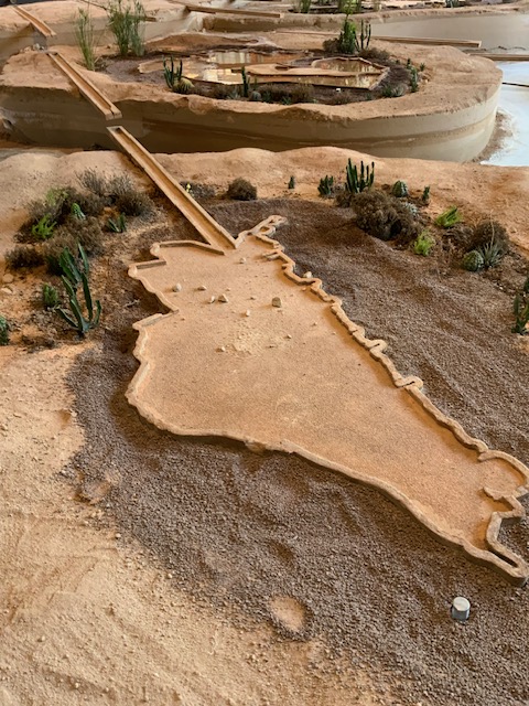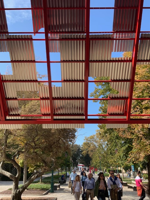 מעל הכניסה לביתן האיטלקי במרכז הגנים נבנה מבנה מתכת מחופה יריעות פח גלי, סוכך לצל שהוא צורך אלמנטרי בעולם המתחמם המבנה מדמה סוככי פח של מבנים ארעיים עשויים מחומרים זמינים וזולים שכיחים באפריקה ובמדינות עולם שלישי.