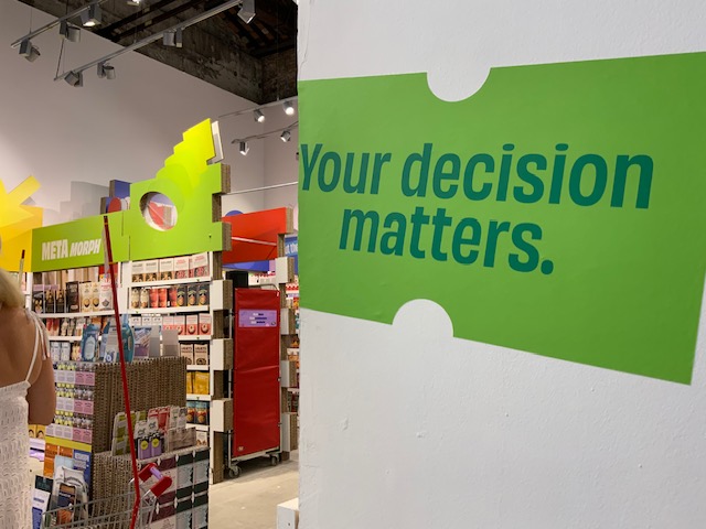 הביתן האמריקאי הציע מבט ומחשבה על אחד החומרים הבעייתיים שהאדם המציא: פלסטיק. החומר נמצא בייצור המוני רק חמישים או ששים שנים, אך יצר מהפכה עולמית אדריכלית ואקולוגית. באמצעות טוטמים ופסלים עשויים מיחידות פלסטיק מוכרות, התערוכה מביעה ביקורת על השימוש המוגזם בפלסטיק ללא מחשבה על העתיד, ועל המשמעות האקולוגית האיומה של מוצרים המופקים מנפט ואשר הם זרים לטבע ולא יתכלו במהלך מאות השנים הבאות .