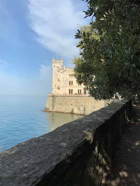 הדרך המובילה אל העיר טריאסטה (כתבנו עליה כאן, מסע בין זהויות) מתפתלת בין צוקים עטורי צמחייה ירוקה לבין המפרץ הכחול הנפרש מימין למלא העין. מעט לפני העיר לא ניתן להחמיץ את הקסטלו, הטירה הלבנה הניצבת באלגנטיות בהירה על רקע הים הכחול חבוקה בגנים מסוגננים ומטופחים. זהו קאסטלו מיראמר שהיה מעונו של הארכידוכס פרדיננדו מסימליאנו ד׳אבסבורגו כפי שקוראים לו באיטלקית) ״מלך מקסיקו הראשון״ (על זה עוד נכתוב בהמשך) ורעיתו קרלוטה נסיכת בלגיה.