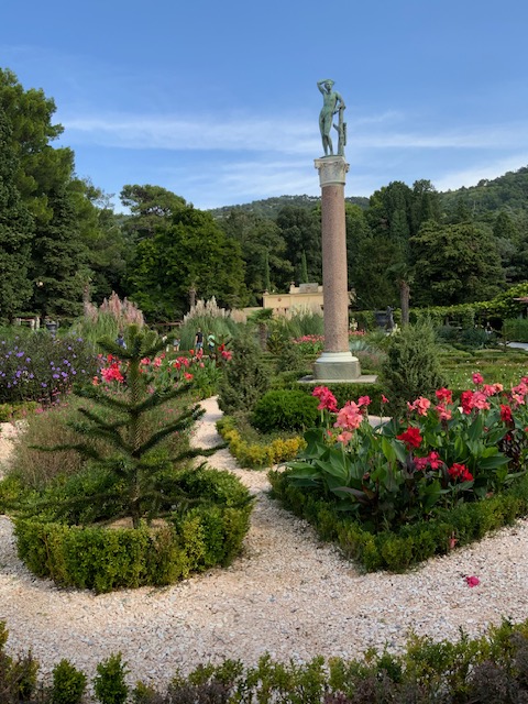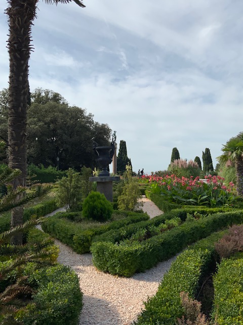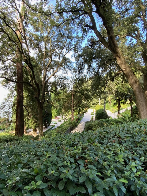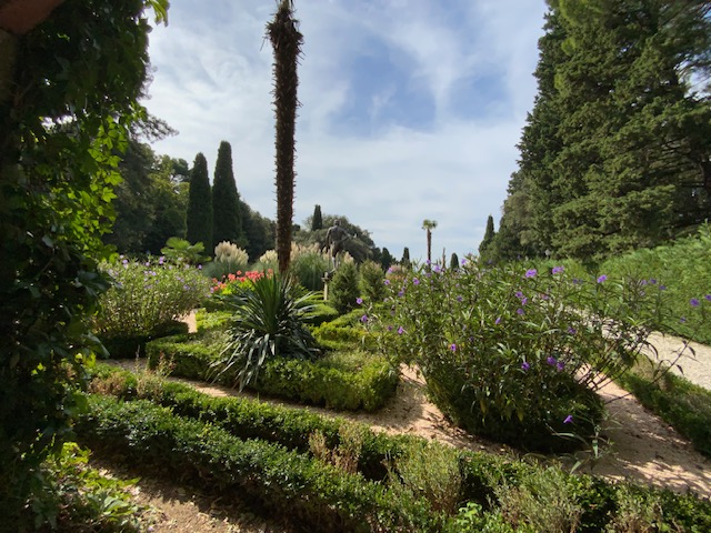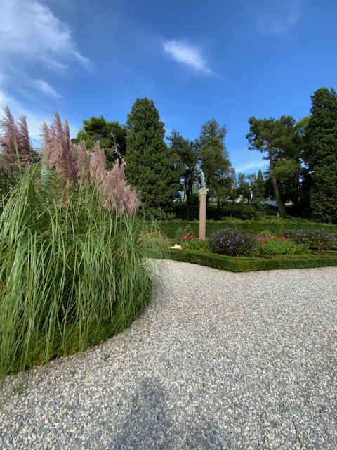מיקומו היחודי של הקסטלו והתכנון הארכיטקטוני מאפשר מבט אל הים הכחול מכל חדריו. מהסלון המפואר בקומה העליונה נשקפים במלוא האלגנטיות הגנים והפארק, המבט מתארך מהגנים האורנמנטליים בסגנון רומנטי אירופאי המעוטרים בפרחים ובפסלים. מקסימיליאן תכנן את הגנים בהשראות שונות, מהגנים האירופאים של ילדותו ועד החורש הימתיכוני שהכיר ממסעותיו בים התיכון ושתל זנים שונים ומגוונים שמחברים בין סגנונות. ניתן לטייל בשבילי החצץ הלבנים המתפתלים מפתח הקסטלו ועד בתני החממות ואחריהן הלאה לעבר החורשות היותר טבעיות שאין לראות את סופן.