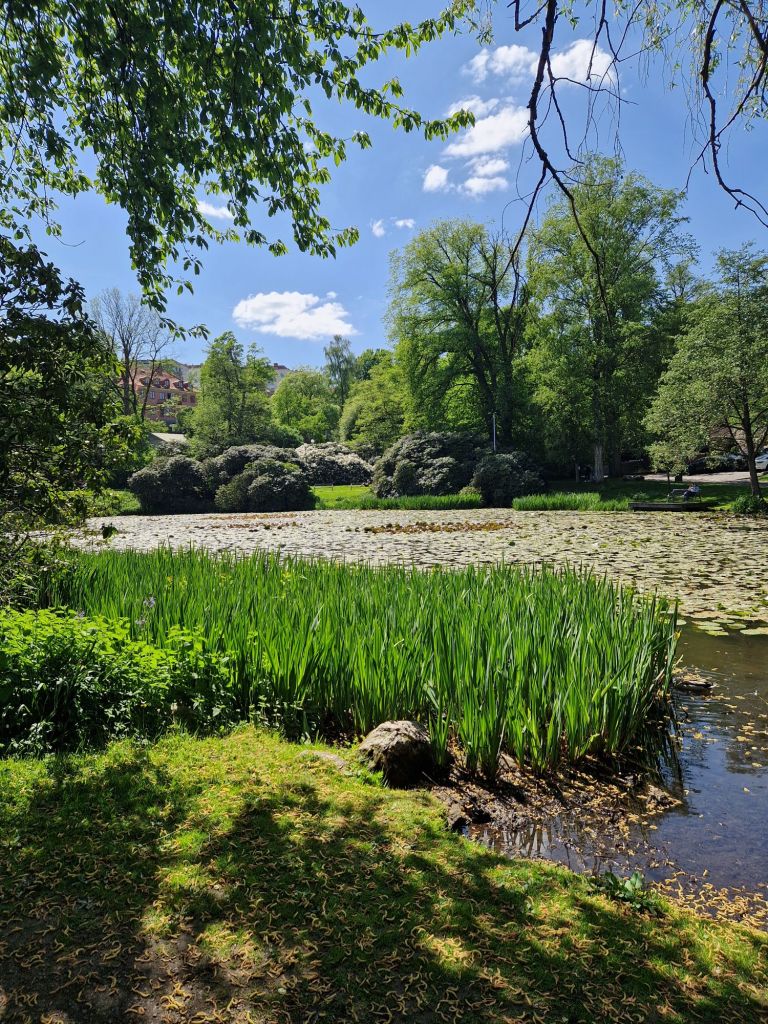 באוניברסיטת גוטנברג בשוודיה, שזכתה לאחרונה לקמפוס חדש למדעי הרוח, הגן נפרש באופן טבעי סביב אגם מלאכותי שמזמין אליו לא רק ברווזים אלא גם את ילדי השכונה. כך הגן משמש לא רק את הסטודנטים שמחפשים מרגוע אלא גם את התושבים שגרים סביבו. בשעות צהרים חמימות של יום אביב נאה אפשר למצוא שם קוראי ספרים על הספסל, רוכבי אופניים במנוחה או ילדים שמשתעשעים במים.