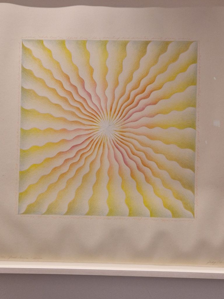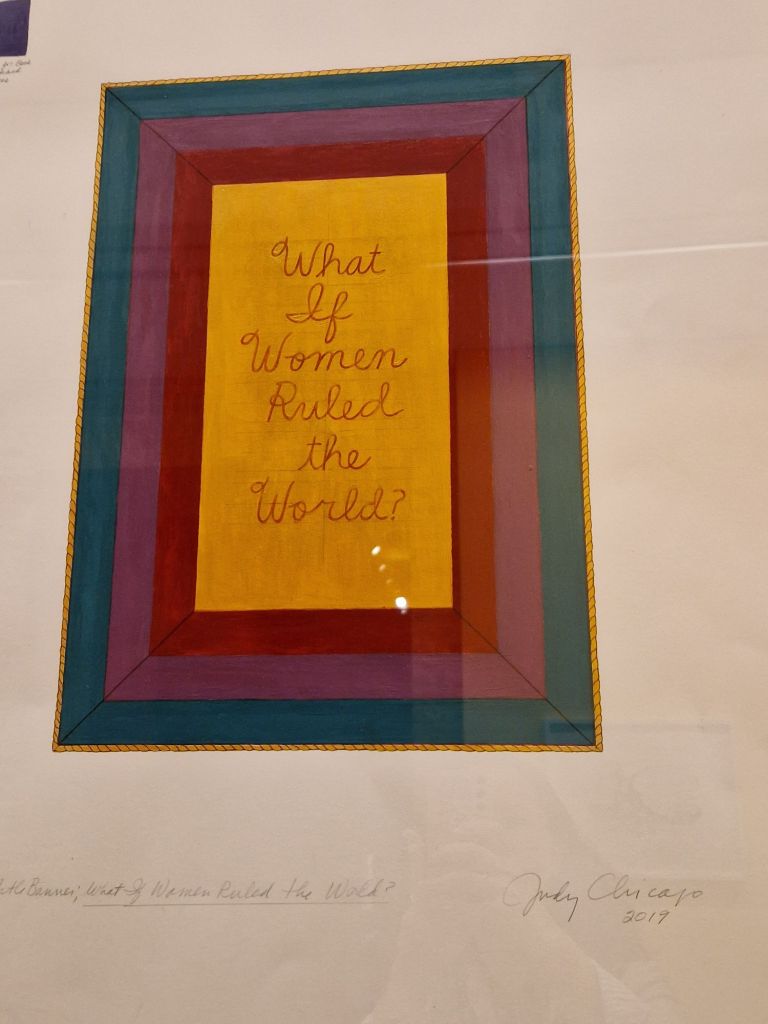 התערוכה עצמה מעניינת, כמבט אישי מאוד על התפתחות המחשבה הפמיניסטית. שיקגו מתעסקת הרבה בטקסטיל, אבל לרוב לא יוצרת בו בעצמה אלא מעצבת רקמות שאחרים מבצעים. היא מתמקדת בציור גרפי, שנדמה לעיתים כאיור לרעיונות הפילוסופיים שלה. ההצלחה הגדולה שלה עכשיו מעניינת במיוחד: אולי העולם מוכן לקבל רעיונות פילוסופיים יותר, ואולי גם האישיות התוססת והצבעונית שלה מתאימה לעידן העכשווי שדורש מהאמנים רמה גבוהה יותר של נראות. מעניין גם המפגש בין שיקגו לאנסלם קיפר, שביקר בתערוכה שלה בניו יורק ואמר (לפי הראיון עם שיקגו בגארדיאן), שג'ודי עשתה כל מה שרצתה בקריירה שלה, ואילו הוא חזר שוב ושוב על אותם דברים. גם אנחנו התרשמנו באופן דומה מהיצירות של שני האמנים שראינו לאחרונה בפירנצה ובלונדון. היצירות של שיקגו אישיות מאוד, כמעט כמו יומן פרטי, מפתיעות ומשתנות. גם אם לא הכל נראה תמיד חדש ומקורי, אין ספק שהיא עשתה תמיד רק מה שרצתה, וגם זה הרבה מאוד.