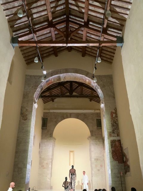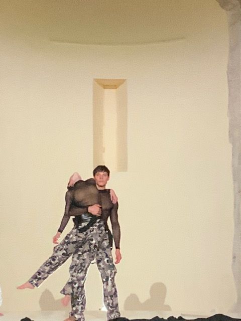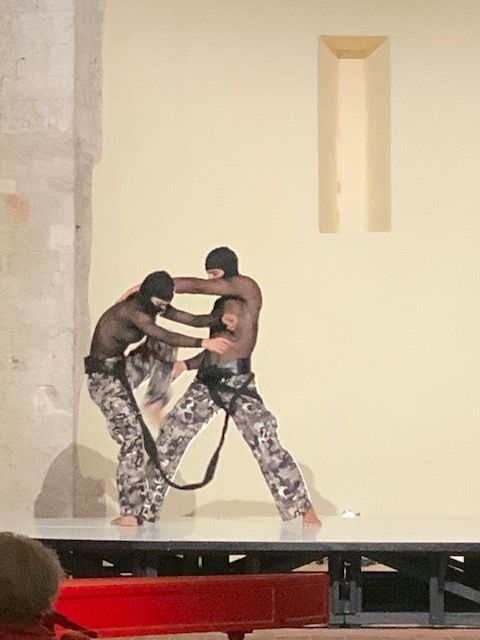 המופע היה יצירה site specific שנוצרה במיוחד לחלל המבנה העתיק מהמאה ה-11. שני רקדנים, זמר, ונגן צ׳מבלו יצרו הופעה מרהיבה. הצ׳מבלו, כלי מיתר עתיק מהמאה ה-14, בעל צליל מתכתי, הקדים את הפסנתר המודרני. בניגוד לפסנתר, שמנגנים על מיתריו בעזרת הקשה, הנגינה בצ'מבלו מבוססת על פריטה. המוסיקה חוברה על ידי המלחין האיטלקי הנודע Claudio Monteverdi בונציה ב-1624 לטקסט Jerusalemme Liberta מ 1581 של Torquato Tasso, שנחשב לקלאסיקה ספרותית מעידן ימי הביניים המאוחרים, בתקופת מסעות הצלב. באיטליה, האפוס האבירי הזה, שנכתב בצורת מדריגלים, הוא חלק מתוכנית הלימודים בתיכון.
