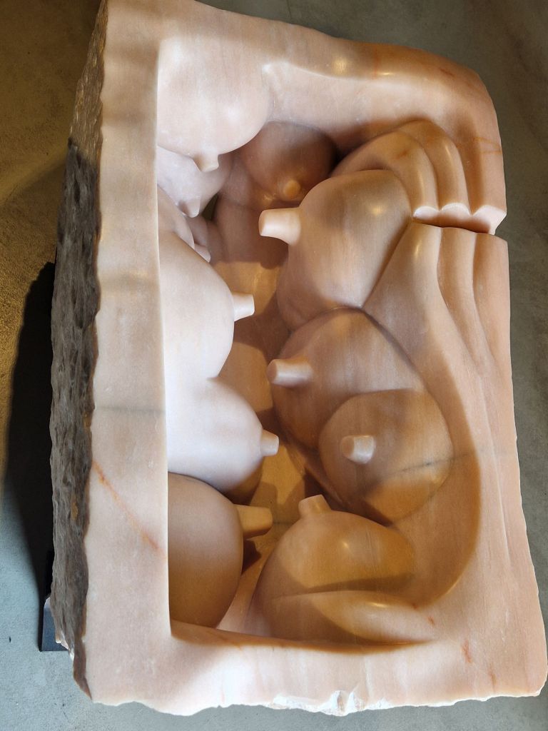 התערוכה השניה נראית כתמונת המראה של תערוכת הבארבי העליזה. זו רטרוספקטיבה של האמנית הצרפתיה לואיז בורז'ואה, שהקדישה את המחקר האמנותי שלה לחווית החיים הנשית, לרוב דרך הטראומות האישיות והמשפחתיות שלה. גם פה מופיע גוף האישה כאידאל, אך הפעם זה אידאל של אמהות, שמגדירה את הגוף הנשי ואת האופן שבו נשים חוות את העולם. בורז'ואה יצרה בובות בד ורודות, חסרות פנים, שונות כל כך מהבארבי המוכרת אך גם דומות לה כייצוג מוקטן של אישה מדומיינת. בניגוד לבארבי, שאין לה איברי מין וחווית האימהות לא מהותית בעולמה, הבובות של בורז'ואה סובבות סביב האימהות. האיורים המופשטים מציגים את הגוף הנשי בהריון, בהנקה, ביחסים אינטימיים, כל אותם דברים שבארבי לא עושה אף פעם.
