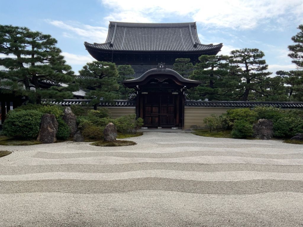 גם יופיו של מקדש Kennin-ji הוא ללא ספק על זמני. המבנה הנוכחי ששוחזר פעמים רבות בעקבות שריפות נבנה במאה השמונה עשרה, אך המקדש נחשב למקדש הזן העתיק ביותר בקיוטו נבנה ב1202. נזיר הזן Eisai הקבור בגן המקדש היה זה שהביא את תרבות טקס התה ואת תורת הזן בודהיזם ליפן ,אחרי שובו ממסע לימודים בסין אליה הגיע הזן עוד קודם מהודו.