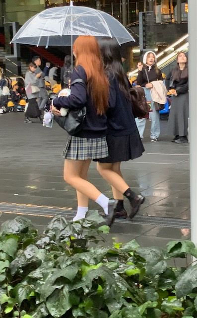 מחוץ לשעות הלימודים הנערות לבושות בסגנון מעט בובותי הזכור לנו עוד משנות השמונים: חצאית קצרה בסגנון חצאית טניס גרביים עד הברך ונעלי בובה.