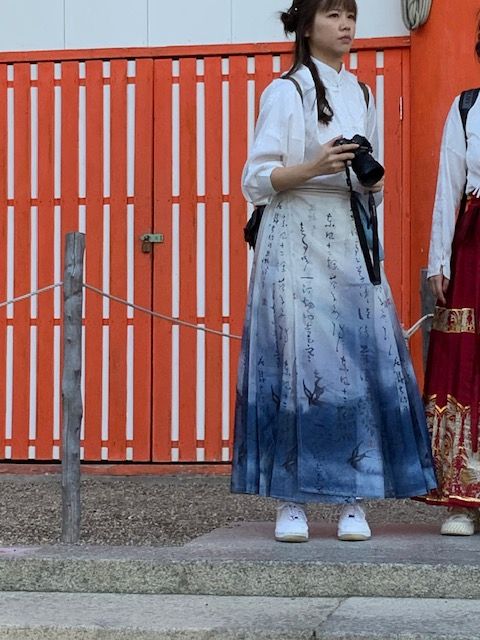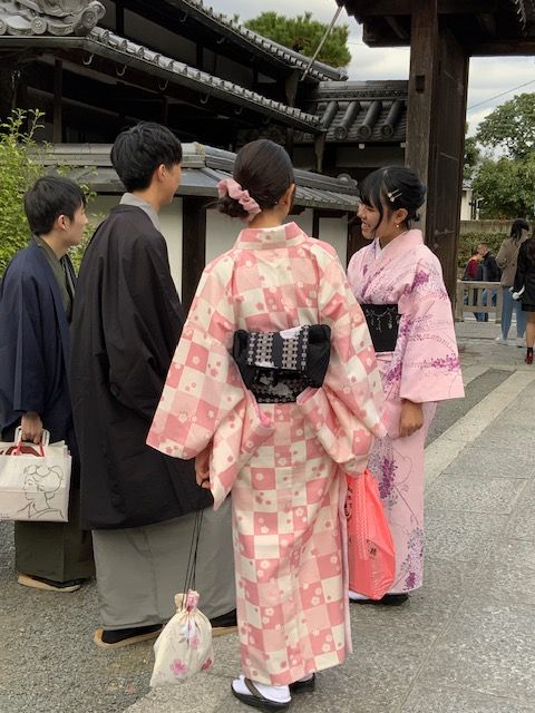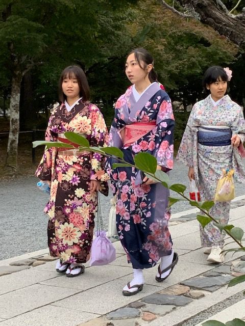 הנוף האנושי ביפן אסתטי ויחודי לא פחות מנופי הגנים העתיקים או הארכיטקטורה המודרנית של הערים הסואנות. היפנים מודעים לחומרי גלם באופן שאולי כבר אבד בתרבות הלבוש המערבית. גם כאן ללא ספק ניכרת השפעת תאגידי האופנה המהירה ואיכות חומרי הגלם הירודה מהם הם עשויים, אבל התרבות והמסורות עדיין נוכחים. מעניין לחזות בנוכחות של בגדים מסורתיים במרחב הציבורי, בעיקר אולי בעיר קיוטו שמשמשת תפאורה מסורתית על מקדשייה וגניה ליפנים שמתהדרים בלבוש מסורתי. אם בביקורינו הקודם לפני שלושים ושש שנים ראינו מיעוט קטן של נשים מבוגרות לבושות בתלבושת יפנית היום זה הפך להיות טרנד בקרב צעירים שלובשים קימונו שעבר מדור לדור במשפחה או שוכרים קימונו באחד מבתי המסחר באיזורים העתיקים. ברובע גיון מציעים גם שירותי איפור וסידור השיער לכבוד התלבושת. כדי ללבוש קימונו דורשה תשומת לב, ידע, זמן. כאן לא ניכרת תופעת “זרקתי על עצמי משהו” (כתבנו על זה כאן). הלבוש כמו האכילה או שתיית התה קשורים לטקסים, מסורות שעוברות מדור לדור והרבה כבוד לעבר ולקרפט המקומי. לצד היופי שבתלבושות העתיקות, חומרי הגלם המיוחדים, דוגמאות האריגים המוקפדות והפרטים הקטנים כמו התיק או סיכות השיער, הלבוש הזה גם מגביל את מהירות ההליכה בכפכפי האצבע החלקלקים. יש בו הצהרה תרבותית, הקשורה לזהות אישית וגם אמירה על משמעות הזמן וחשיבות של האיטיות.