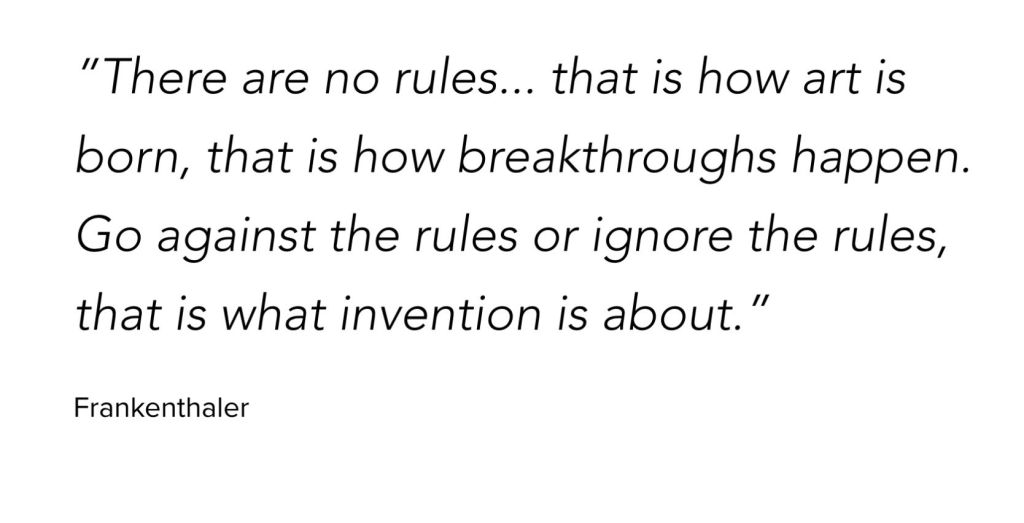 כשהיא שבה לסטודיו שלה היא החלה לצייר בטכניקה משלה על בד גולמי ללא הכנה מונח על הריצפה. היא עבדה עם צבעי אקוורל או שמן, חלקם מדוללים מאד ואחרים יותר סמיכים, והניחה להם להיספג אל תוך הבד. לפעמים פשוט שפכה דלי עם צבע על חלק מהקנווס ובהמשך עבדה עם ספוג כדי לשלוט בחלק מהקומפוזיציה האקראית. המשחק בין שליטה לאקראיות הוא המשך ישיר לטכניקה שהציג פולק לפניה, טכניקה המייצגת רוח חופשית ואינטואיטיבית המקבלת את האקראי כחלק חשוב מהתהליך האמנותי.