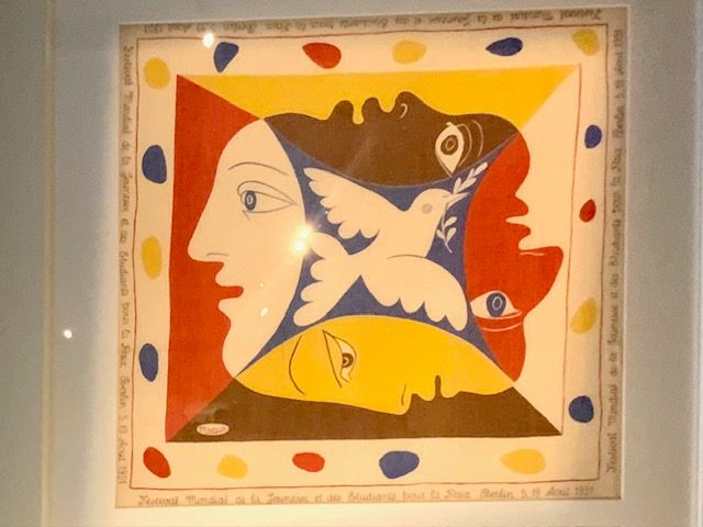 בשנת 1937 במהלך מלחמת האזרחים בספרד התבקש פיקאסו על ידי הממשלה הרפובליקנית הספרדית להכין עבודה לביתן הספרדי בתערוכה הבנלאומית בפאריז באותו הקיץ. הוא צייר במהלך כחודשיים את העבודה גרניקה שתיארה את ההפצצות האויר של הנאצים ובני בריתם האיטלקים על הכפר גרניקה בחבל הבאסקים באביב. היצירה נדדה ברחבי העולם והיא עדות לפעולה שאפשר להגדיר אמיצה מצידו של אמן חסר אזרחות או הגנה בתקופה מסוכנת. פיקאסו נקט בעמדה ברורה כאדם, הוא בחר להיות בצד ששלל את המלחמה ואת הפתרון הצבאי על כל המשמעויות השליליות שלו. הוא בחר בסמל השלום, כמו דימויי היונה שחוזר ביצירתו באופנים שונים כמו שניתן לראות בציור ובתקופה שיצר בחימר. גם היום, הגרניקה והיונה התנתקו מההקשר הלאומי ההיסטורי שלהן והפכו לסמלים נגד דיכוי, אלימות ומלחמה ברחבי העולם, בזכות האוניברסליזם של האמנות.