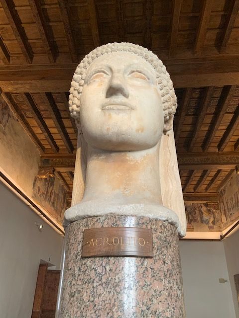 הארמון השוכן בקרבת פיאצה נבונה ההומה בתיירי ברים ומסעדות מהבוקר ועד שעות הלילה המאוחרות. בין היכליו המוזיאון מציע דממה נעימה המאפשרת להתרכז במוצגים ולהנות מהחללים רחבי הידיים, חלקם מאוירים בציורי קיר יפים. הפסלים שייכים לאוספים שונים מאוסף הקרדינל שרק מעט נותר ממנו אחרי שפריטים רבים נמכרו במאה השש עשרה. עכשיו נמצאים במוזאונים רבים כמו הלובר ועוד, ועד כמאה פריטים מאוסף Bonvompani ludovisi רובם העתקים רומאיים של פיסול יווני שנמצאו בחפירות ארכיאולוגיות. ראינו גם פסלים מצריים נפלאים שנמצאו בחפירות בעיר ומשויכים לתקופה של כיבוש מצרים על ידי הרומאים בשנת 30 לספירה, אז פיסול מצרי נחשב לאופנתי והוצג בבתים פרטים ובמבני ציבור.