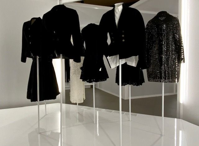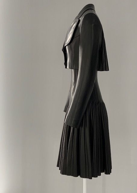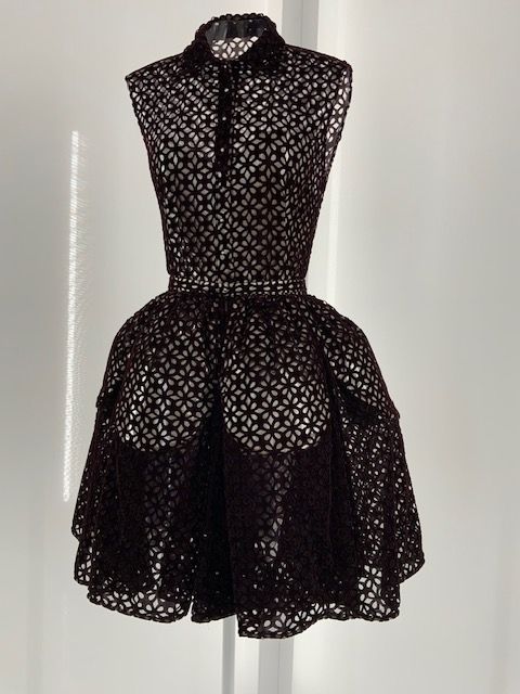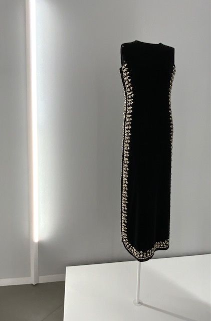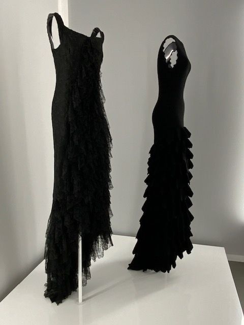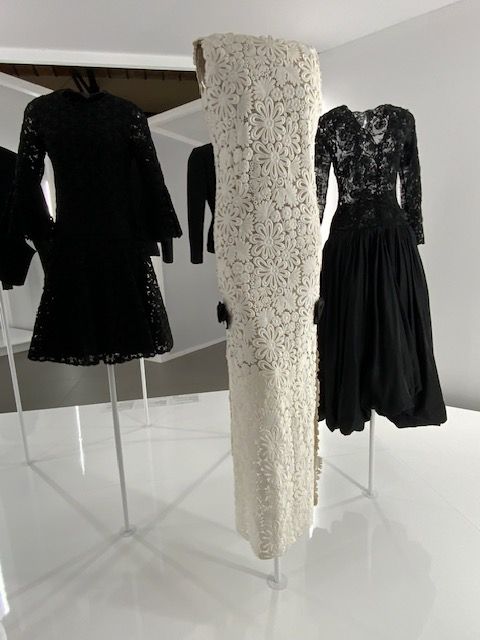 עשרים וחמש יצירות של אלייה מנהלות דיאלוג עם מספר יצירות דומה מתוך ארכיון בלנסייגה בפריז אשר נוצרו בין 1950-1968. העבודות מייצגות ערכי עיצוב משותפים לשני היוצרים בני דורות שונים. אמנות החיוט מדגישה את מבנה הגוף הנשי. השמלות המוצגות על רקע לבן בוהק כהות ברובן וניתן להתרשם מהאפקט הפיסולי שלהן. בלנסייגה מתאפיין בשימוש באריגי צמר, סאטן ומשי, ואילו אלייה פיתח את החיוט הרך המזוהה עימו בסריגים ועור. יחד, השמלות מאירות זוויות שונות בהיסטוריה של העיצוב העילי הצרפתי.