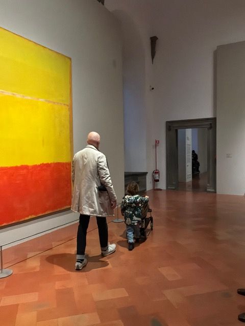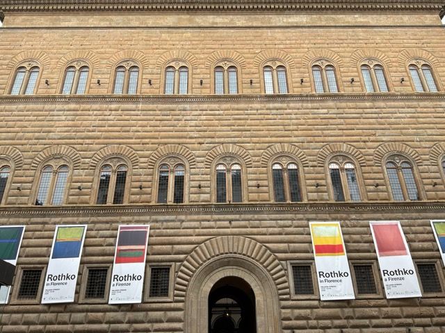 ואילו בפאלאצו סטרוצי לשמחתנו היה רק תור צנוע של מבקרים ליד הקופות כדי לצפות בתערוכה החדשה שנפתחה כאן לפני שבועיים, ׳רותקו בפירנצה׳. התערוכה באוצרות בנו של האמן כריסטופר רותקו והאוצרת אלנה גאונה בחסות משרד התרבות האיטלקי ופאונדיישן פאלצו סטרוצי כאשר מספר עבודות מוצג גם במוזאיון סן מרקו בדיאלוג עם פרסקו של באטו אנג׳ליקו ובספרייה לאוראנציאנה, מקומות מרכזיים בעולם ההשראות של רותקו. התערוכה היא אחת החשובות ביותר המוקדשות לאמן האמריקאי יליד העיר Daugavpils אשר בלטביה, משם היגרו הוריו לארצות הברית בהיותו כבן עשר. מארק רותקו שנולד בשם מרקוס רותקוביץ, נחשב לפיגורה מרכזית בזרם האבסטרקט האמריקאי של המאה העשרים. הוא הותיר חותם מובהק של נקיון צורני עמוק יחד עם שפה צבעונית אישית ופואטית.
